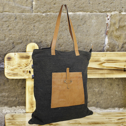 Stylish Large Tote Bag with Cargo Pocket & Leather Strap