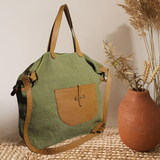 Timeless Linen Handbag with Genuine Leather Handles