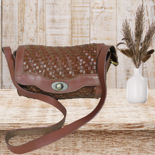 Barrel Leather Bag with Twill Weave