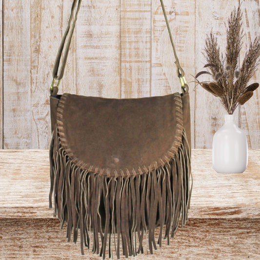Suede Saddle Leather Bag with Fringes