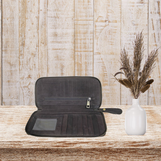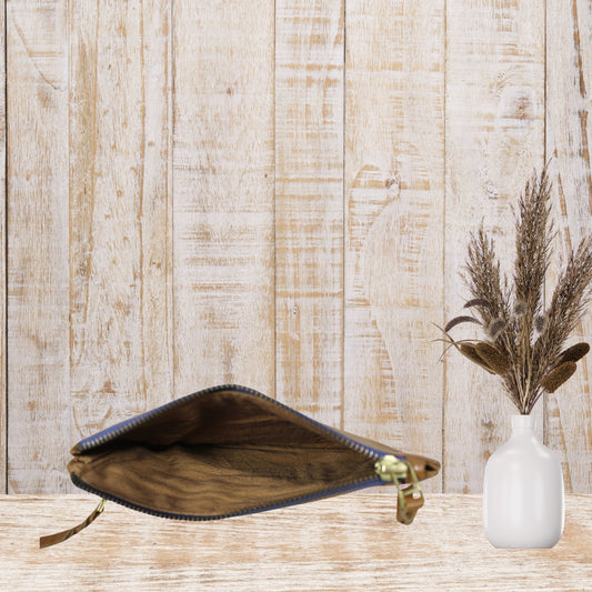 Brown Suede Leather Wristlet Pouch